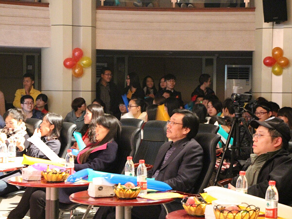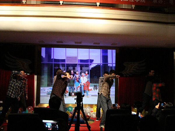 主持人的一首《站起来》首先点燃了全场观众的热情,赢得了同学们的阵阵欢呼,奠定了整个晚会的欢乐气氛。精彩的演唱之后,由高仕斌经理发表讲话,晚会正式拉开帷幕。
