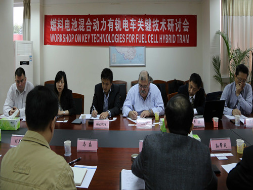 2013年11月4日,由公司组织的“燃料电池混合动力有轨电车关键技术研讨会”在工程中心会议室成功召开。出席本次研讨会代表包括:唐山轨道客车有限公司总工程师孙帮成高工(教授级)、副总工程师张晓军高工及其代表团;加拿大Ballard公司首席技术官Chris先生及其代表团;北京碧空新能源技术有限公司总裁李然博士、运营主席马东升先生;九游会j9书记兼常务副经理陈维荣教授、马磊教授及燃料电池研究团队。与会代表就燃料电池作为城市有轨电车动力的关键技术问题开展了深入研讨。